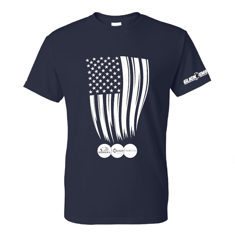 Navy Blue T-shirt with White GLICK EMS logo on left sleeve and White DBC Flag Design